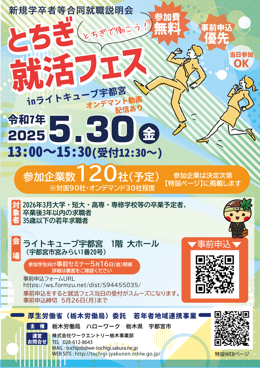 5月30日(金) とちぎ就活フェスinライトキューブ宇都宮に参加します。